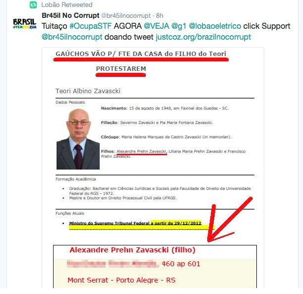 ao divulgar o endereço do filho de um ministro, por este tomar uma atitude que não agradou o artista