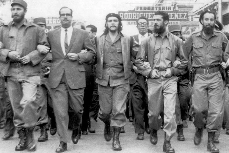 Fidel Castro, Che Guevara e companheiros marcham pelas ruas de Havana após a vitória da Revolução Cubana em 1959. A imagem se tornou símbolo de uma ruptura histórica que desafiou o imperialismo dos Estados Unidos e acendeu debates políticos em toda a América Latina. Foto: reprodução
